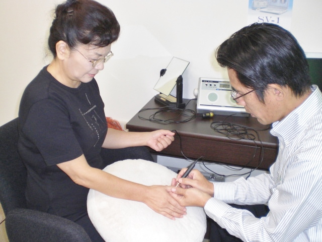 それと同時に「心理経絡機器SV-1」を使って経絡の測定を行い、通りの悪い経絡に対して「経絡セラピー」を行い、経絡の滞り(気の流れ)を改善します。